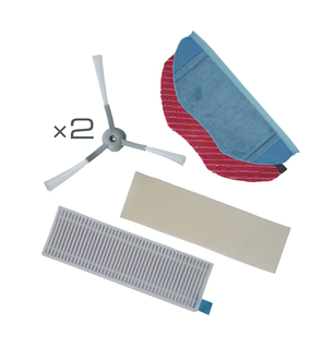 This cleaning kit, designed for vacuuming pet hair, is compatible with the S95 vacuum cleaner and includes: 2 side brushes for corners and hard-to-reach areas. 1 high-density fiber moistened wipe for cleaning pet hair and tough stains (red wipe) 1 standard medium-density fiber wipe: soft, suitable for all types of flooring, including delicate floors (blue wipe) 1 high-performance filter: filters up to 99.9% of dust allergens. To maintain your robot's suction power, we recommend changing the wipes every 100 washes, cleaning the side brushes once a month and replacing them twice a year, and changing the filter twice a year.
